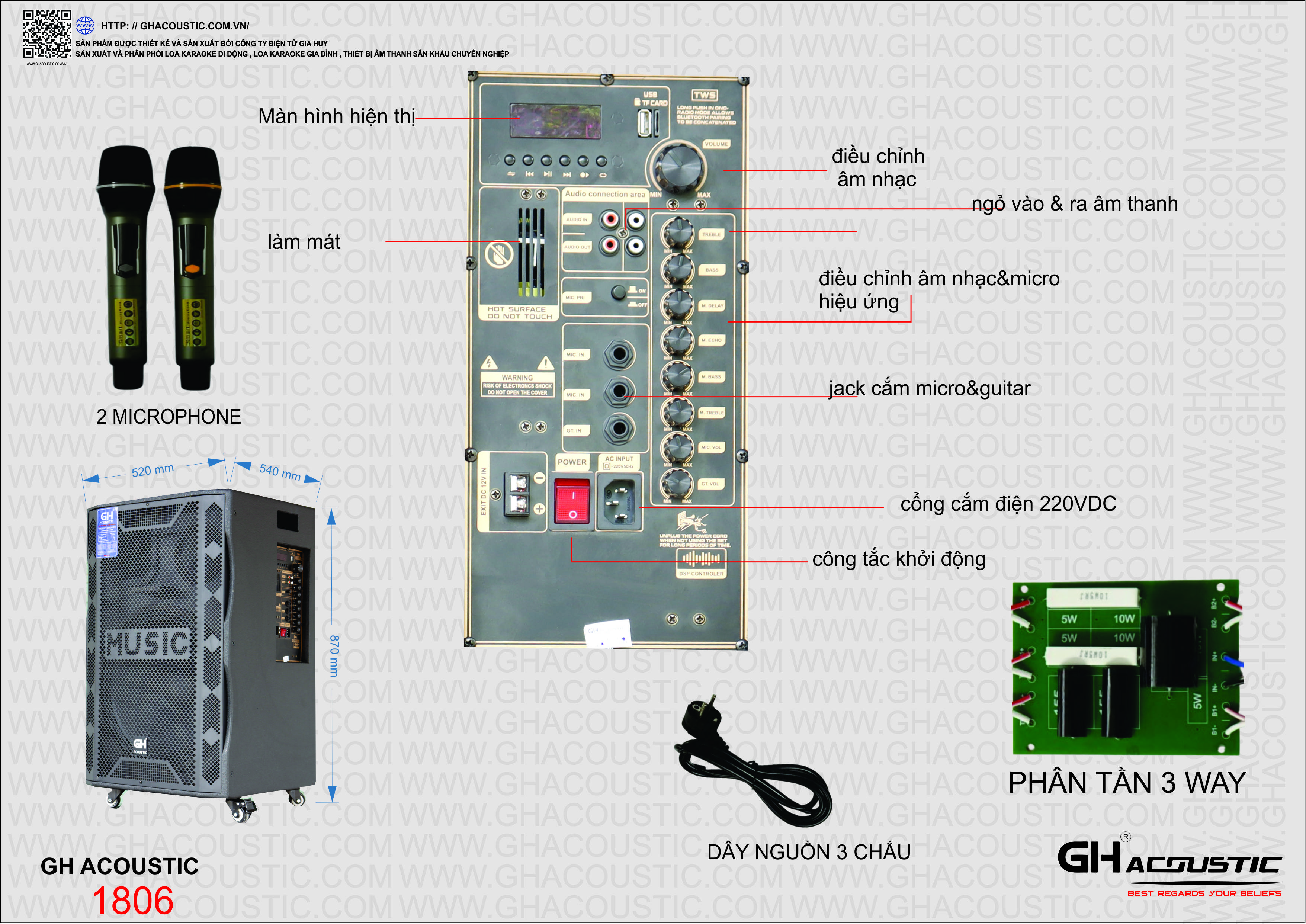 Sự kết hợp hoàn hảo giữa chất lượng âm thanh tuyệt vời, thiết kế dạng gấp tiện dụng và tính năng vượt trội, loa kéo 1806 là một trong những sản phẩm loa karaoke di động đang được ưa chuộng tại thị trường Việt Nam. Với khả năng tái tạo âm thanh mạnh mẽ, bass sâu, mid và treble rõ nét, 1806 hứa hẹn mang đến cho bạn những trải nghiệm hát karaoke đỉnh cao, dù là trong các buổi tiệc gia đình hay sự kiện ngoài trời.