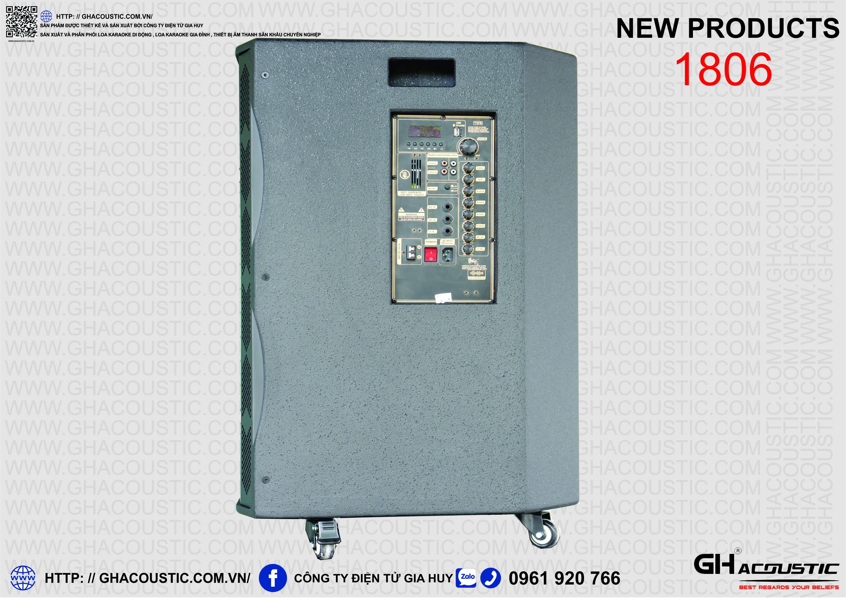 1806 có kích thước khá ấn tượng với chiều dài 54 cm, rộng 52cm và cao 87cm. Với trọng lượng 48 kg, sản phẩm có thể di chuyển một cách dễ dàng nhờ hệ thống bánh xe và tay cầm tiện dụng. Kiểu dáng của loa không chỉ hiện đại mà còn rất chắc chắn. Loa kéo 1806 không chỉ phù hợp cho ngoài trời mà còn có thể sử dụng tại các sự kiện quy mô lớn nhờ vào khả năng khuếch đại âm thanh mạnh mẽ.